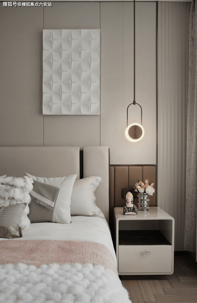 作为与房间主人最紧密链接的空间,主卧设计对于展现其品位、格调、审美等多样精致需求的标准更为具象。真皮包裹的墙面让房间内部的光线变得沉稳而内敛。便是其拥有的全套房设计,并且都带有独立的生活空间,包括主卫及个人衣帽间。保证了家庭成员适合的交流尺度,进可以全家交流,退可以互不干扰。