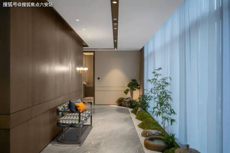 通过大面积落地窗,结合空中花园式的禅意景观,营造自然、灵动、大气、通透的空间尺度,揽江景入怀,为室内增添独特的设计符号。