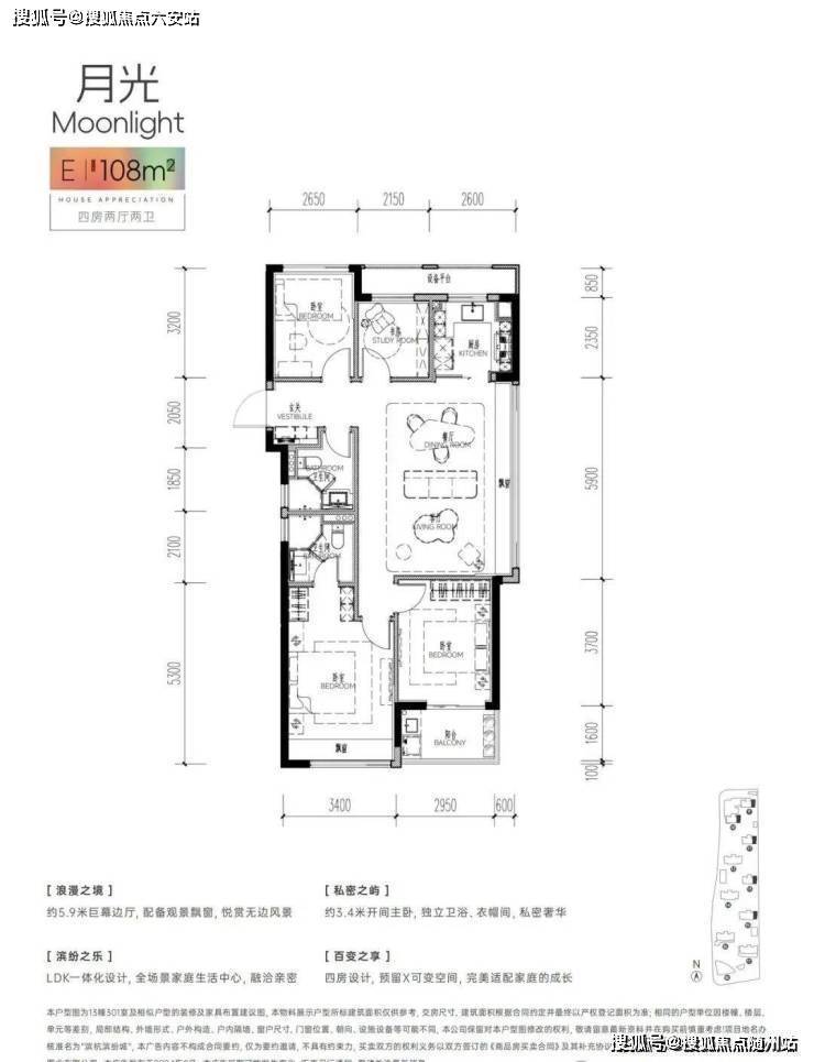 若三代同堂或二胎家庭,112㎡四房边套会是一个更经济实惠的选择。整体布局是在98㎡基础上增加了一个北向次卧,在保证各自有独立居住空间的同时还能保留书房这个“现代刚需”。由内到外都给出了绝对的诚意。