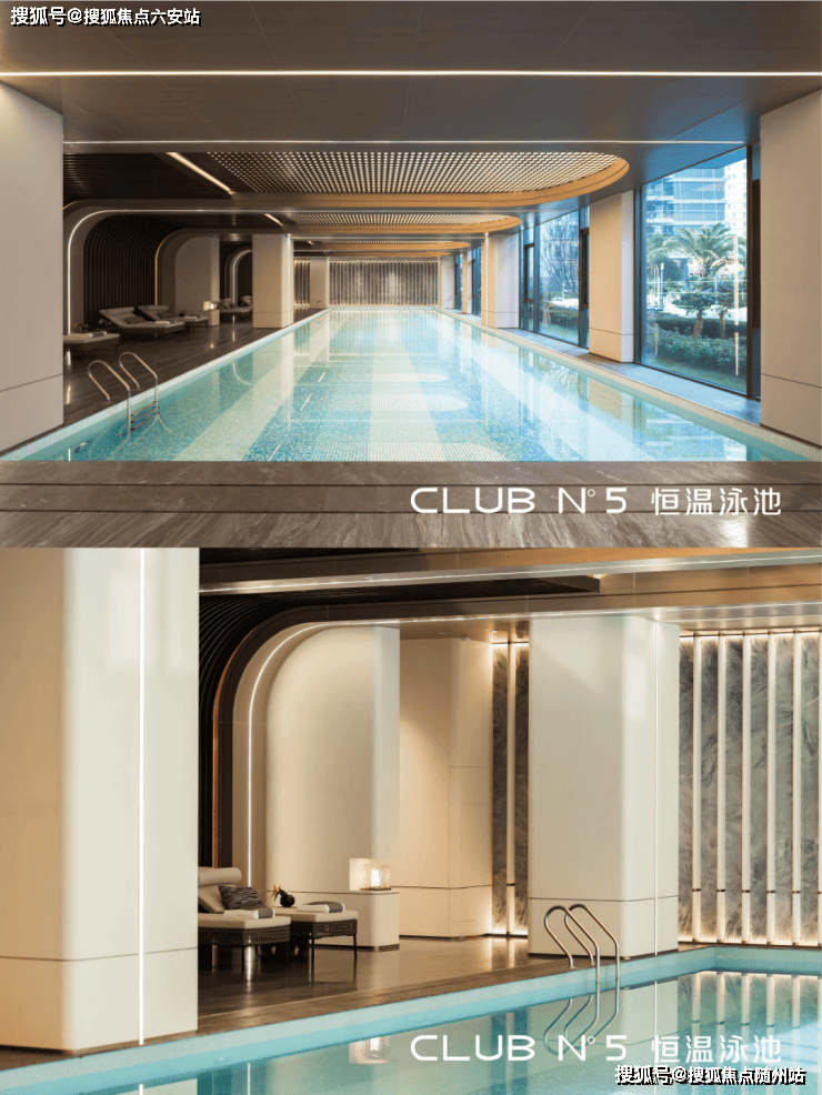 Club N°5会所含恒温泳池、泰诺健奥运级健身器材、壁球区、米其林主厨私宴厅,提供圈层社交与家庭休闲空间,已实景呈现。