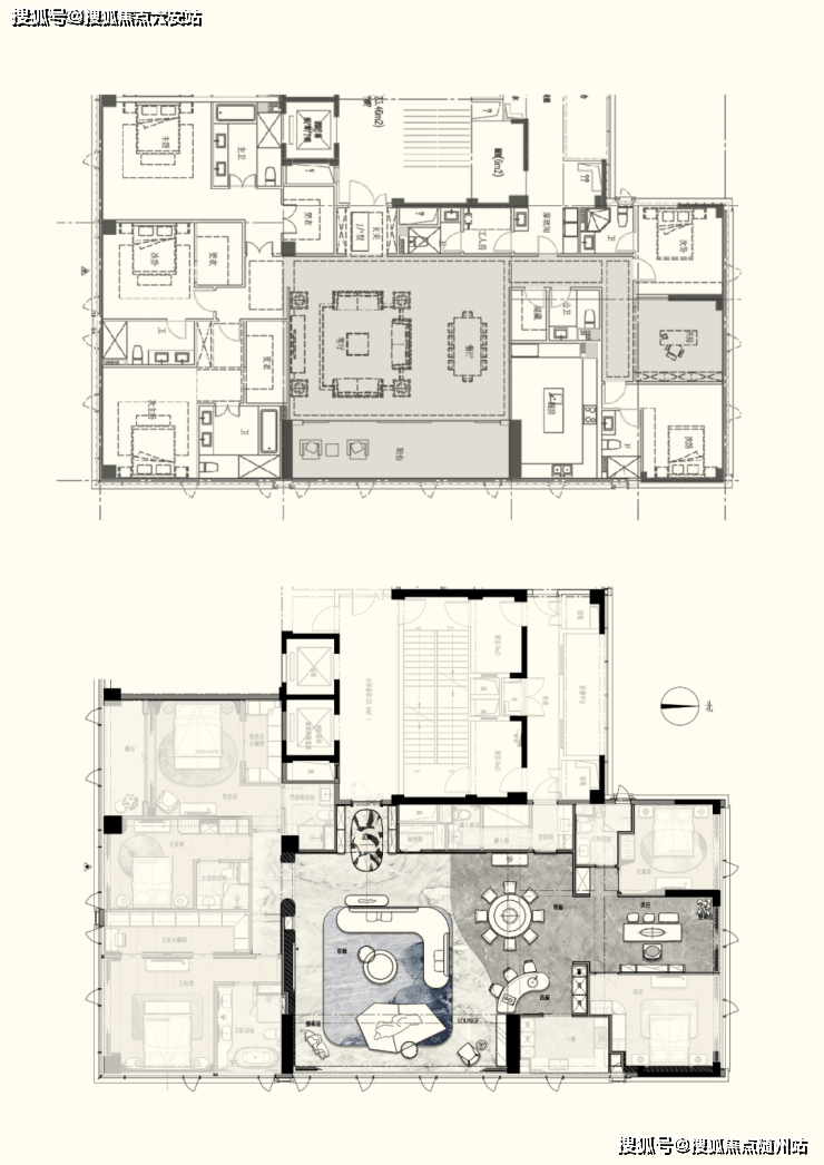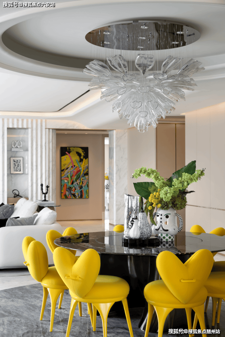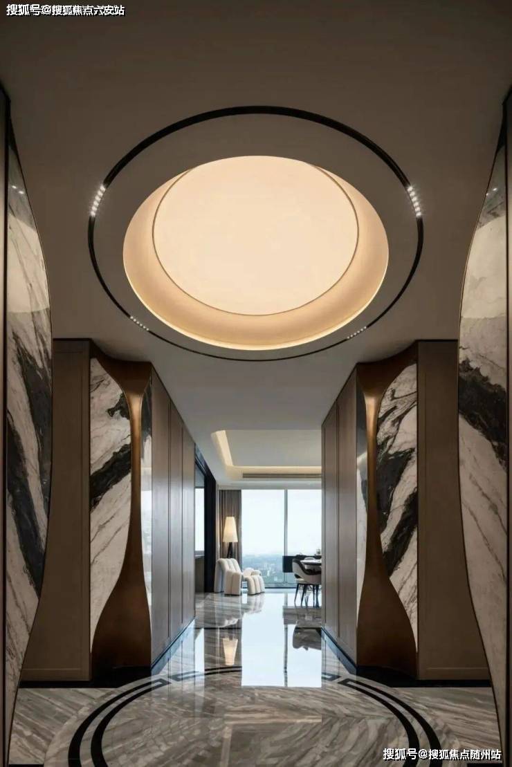约300㎡“观湖”,谢柯打造;另一款是更宽舒的约412㎡“行云”,出自邱德光。尤其是约412㎡“行云”,无论玄关处雪花白、劳伦黑金、金世纪的大胆拼花,瓦楞式的波浪形电视背景墙,还是吸睛的普拉达绿石材吧台,全屋随处可见出色审美和奢华材质的完美结合。