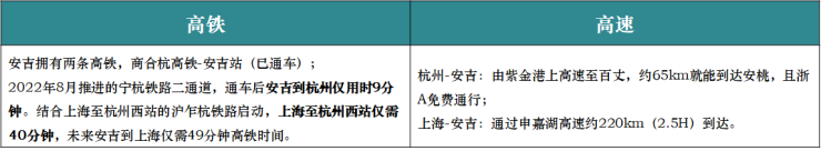安吉紧邻杭州和上海、坐拥长三角的地理占位,随着高铁、高速等多元化立体轨交成型,安吉已实现1小时+“接沪融杭”的格局。