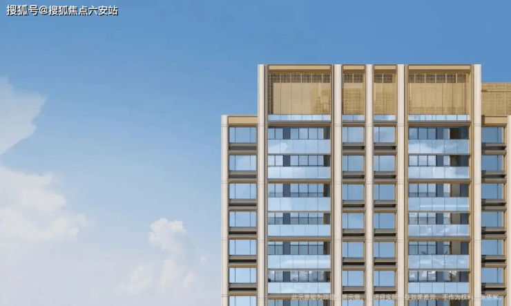 精装标准:方太厨电、科勒卫浴、霍尼韦尔新风系统,外立面采用公建化设计,落地玻璃窗搭配石材铝板基座,层间金色装饰条勾勒现代美学。