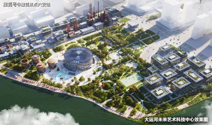 直线约800米是荷兰MVRDV设计的大运河未来艺术科技中心(在建)(数据来源百度地图)。它将打造艺术科技中心、创意街区,以及由炼油厂“活化”而来的主题公园。