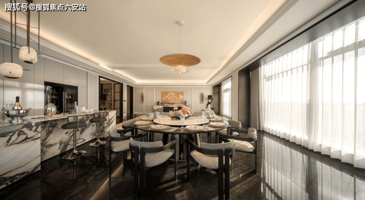 全面屏组合窗与铝板幕墙消隐了线条的边界,晨曦金、江潮蓝、月光白的色彩随昼夜变幻,与钱塘江的潮汐共鸣。入户处,2米宽的超尺度艺术廊道与半通透的空间格局,延伸了视觉的纵深感;公区内的“X空间”则如一张白纸,等待业主以兴趣为笔,绘制出独一无二的生活图景。