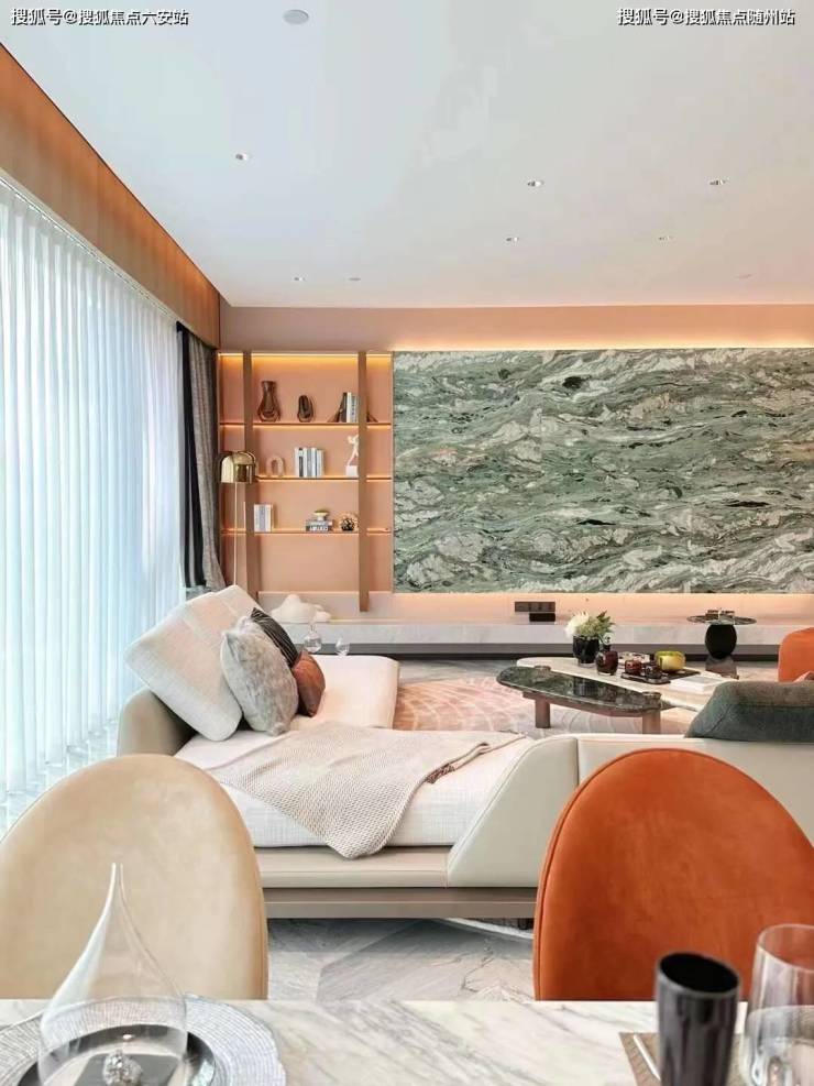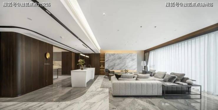 客厅背景墙更像是一场世界顶级石材展览,西边套用的是巴西进口石材天宝石,高贵中带着优雅;东边套用的是意大利卡拉拉大理石中的顶级「雕刻白」系列,我们熟知的世界著名雕塑《大卫》雕塑、世界著名建筑比萨斜塔等等,用的就是这一种石材。
