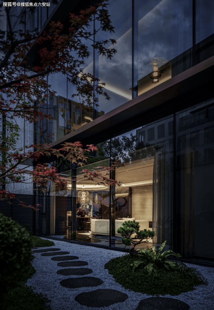 景观布局以漫步画境的形式,四进空间层层递进。开阔草坪拥抱社区的欢聚与庆典,禅意水院倒映天光云影,让喧嚣归于宁静;草坪与雅座编织邻里温情的日常;借叠水与留白唤醒返璞归真的本真。