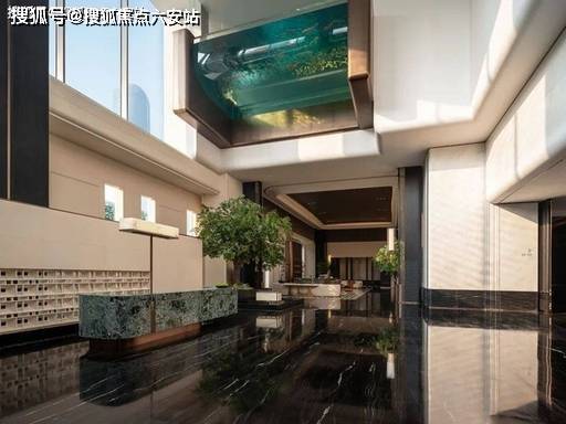 公区:13 米挑高入户大堂、太古青金奢石、空中悬浮泳池