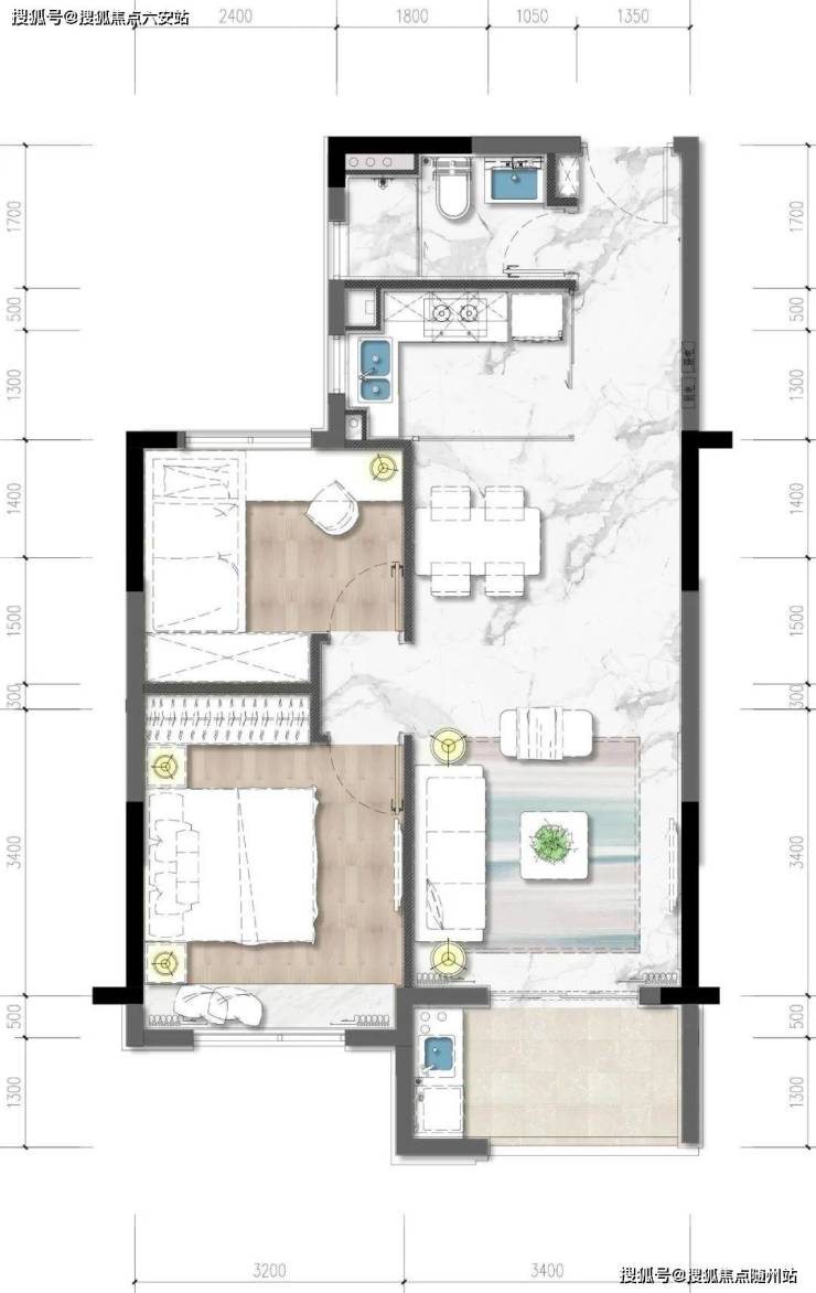 同时,整个房间生活动线清晰,动静分离明显,两个卧室采光都很棒,厨房、卫生间也没有光线死角,紧凑但十分实用。