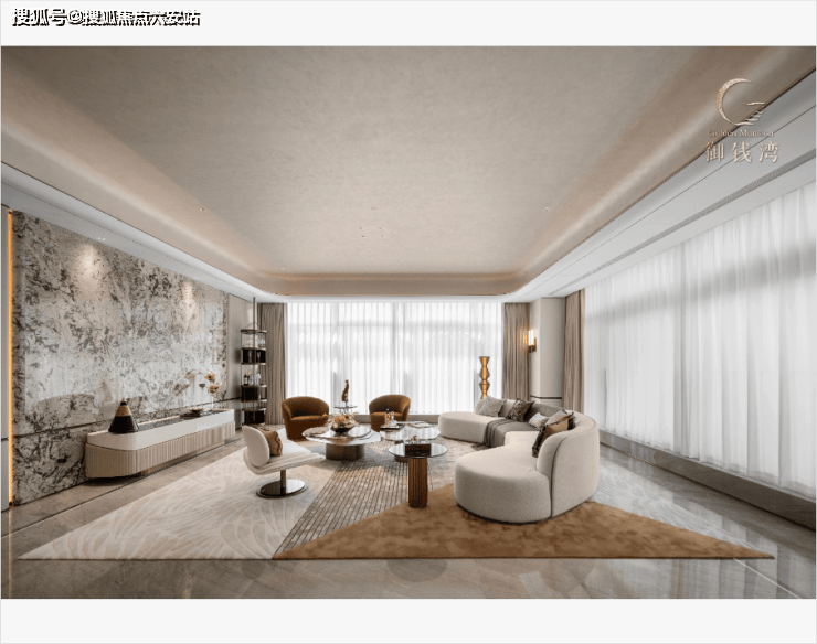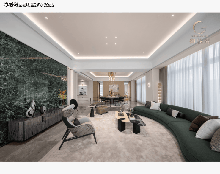 外观立面是全面屏组合窗铝板幕墙,消隐建筑线条,金属与设计碰撞出未来感,尽显高级品味。步入御钱湾生活美学馆,绵延水韵凝练的“隐奢度假”诗境浑然天成。