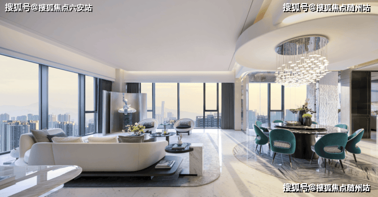 超越时间的建筑:项目建筑由当代设计顶尖团队操刀,以“无界共融”设计理念,江水为源,昼夜为引,打造轻盈精奢外立面,流畅金属线条,着色“晨曦金”、“江潮蓝”、“月光白”,质造隽永之美。