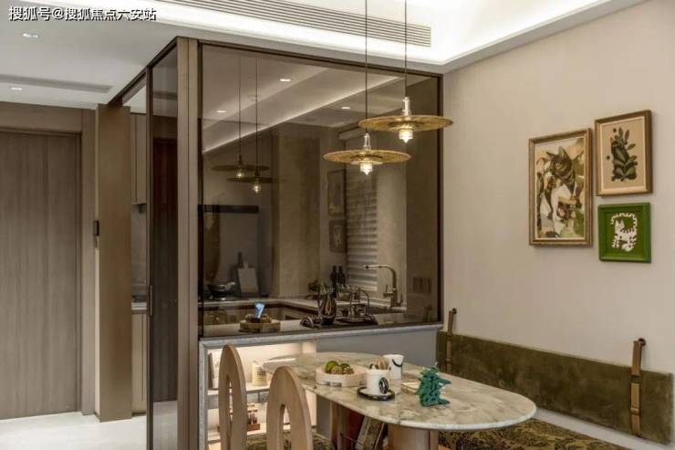 建面约95㎡的户型,阳台客厅一体贯通。冰箱通过“S墙”外置,实现了完整的U型厨房操作台面 ;同时,厨房与餐客厅之间巧妙配置了隔断式玻璃墙,打破空间的视觉边界,一抬眼就看得到客厅,让家人们得以共享欢乐烹饪时光。