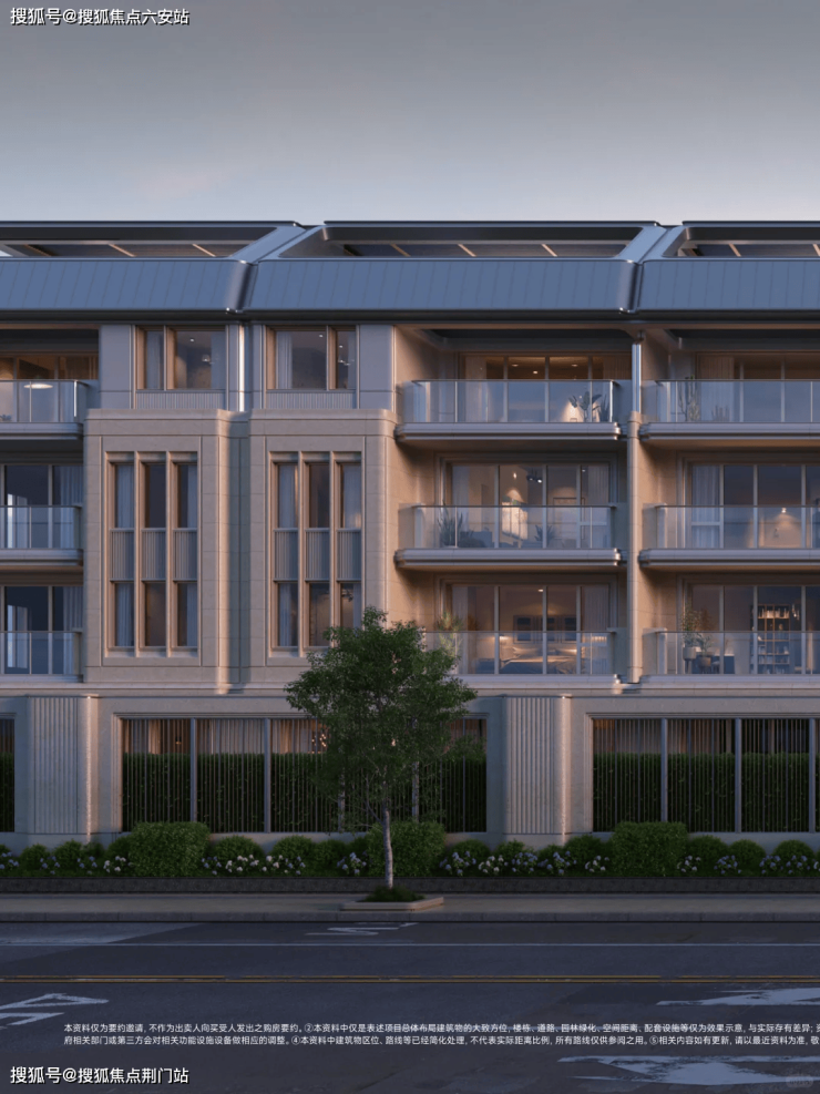 建筑灵感源自西湖边北山街的历史建筑群,GOA大象设计团队从新新饭店、秋水山庄等经典中汲取美学符号,以“摩登海派”风格重构湖居美学。陡峭的四坡双折屋顶、镂空的老虎窗设计,既保留了民国建筑的优雅气质,又通过纵向贯通的阵列式竖条窗、单元间凹曲线条,弱化建筑层叠感,强化每户的独立性与“类独栋”观感。外立面采用香槟银铝板与天然石材干挂,在桃花湖的碧波烟柳间,勾勒出一幅“东西交融、古典新生”的立体画卷。