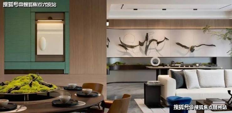 最后是精奢于心的优雅空间,例如由琚宾设计的杭州首个宋韵作品「SONG370」,提取经典名画《西湖全景图》中的丹青意蕴,运用风景开阖、空间对比等传统设计手法,从青玉横幅背景墙到金缕编织墙面,从自然奢石到苔藓微山水,千百次挑选材质和精工打磨,为杭州带来一处奥体之上的江南庭院。