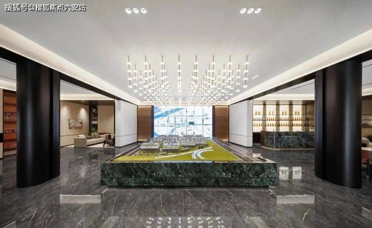 更值得细品的是“六翠之境”——大量玻璃幕墙与局部铝板的组合,让建筑通透轻盈;地下车库以灰、灰绿、橘黄配色营造宁静感,入户大厅的岩板抽象画与暗金推门,细节处尽显高级。