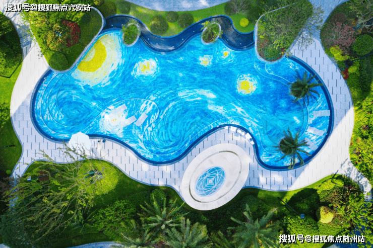 最耀眼夺目的,当然是以彩色玻璃马赛克铺就的中央美池,面积足足约480㎡。从家中阳台俯瞰,画面就如同荷兰后印象派画家梵高最负盛名的作品——《星空》。
