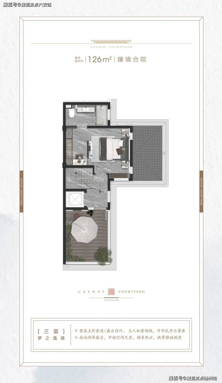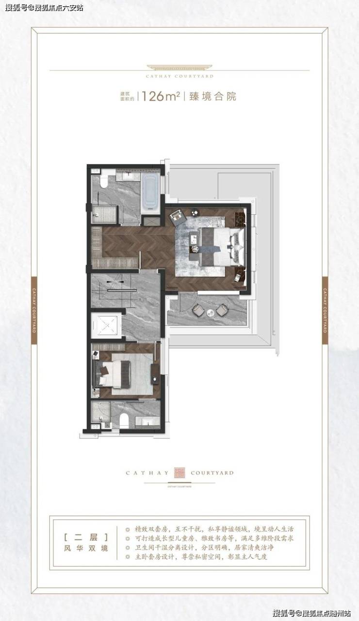 建面约126㎡的合院户型,同样适合三代同堂,或者三口之家以及高净值年轻夫妻等家庭。