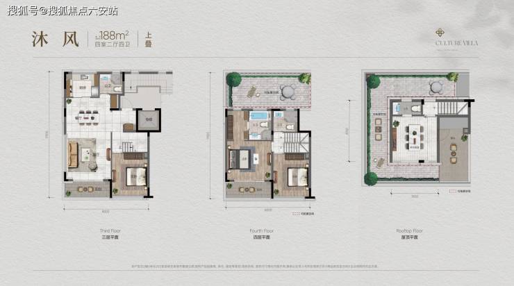 上叠 约188–195㎡ 270°环幕式生活露台(约40–60㎡),视野无遮挡,可俯瞰茶山与高尔夫球场 空中花园、观星台、茶室、晨练区、家庭聚会空间