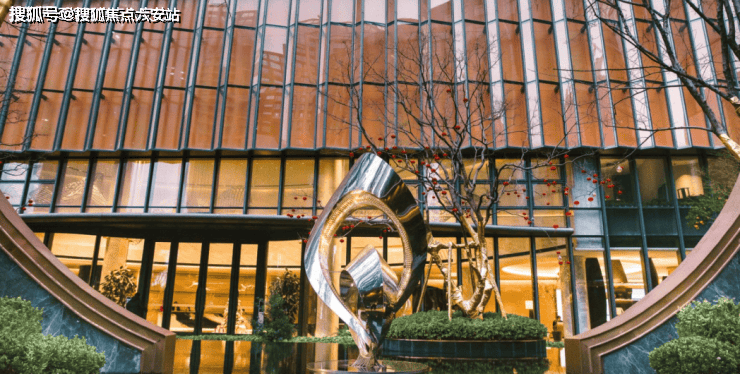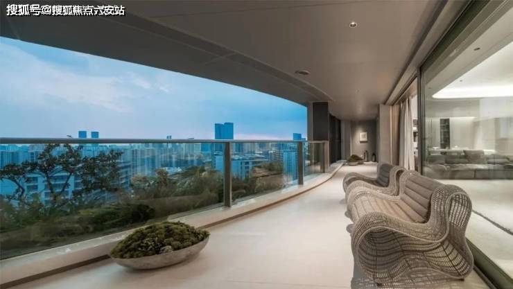 是全杭州唯一的三叶草立面弧度的大平层,实现了真正的270度采光,一层三户没有绝对的东西边套,每一套都是全边套设计。这样不同阳光的角度下,深蓝色大面积落地玻璃映照着金属线条,又有着不一样的景致,而且采光毫无死角,窗外如此盛景