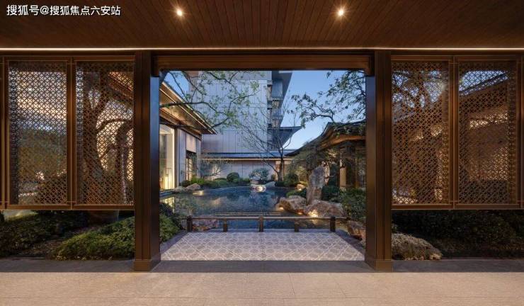设置全域风雨连廊,园林景观独具匠心,将西湖十景融入园区,53米宽、10.85米高的中式大门搭配罗汉松与黄铜狮,尽显归家礼仪;中庭复刻“柳浪闻莺”“花港观鱼”,如西湖画卷;下沉庭院有百年古树,步移景异如“人在画中游”。
