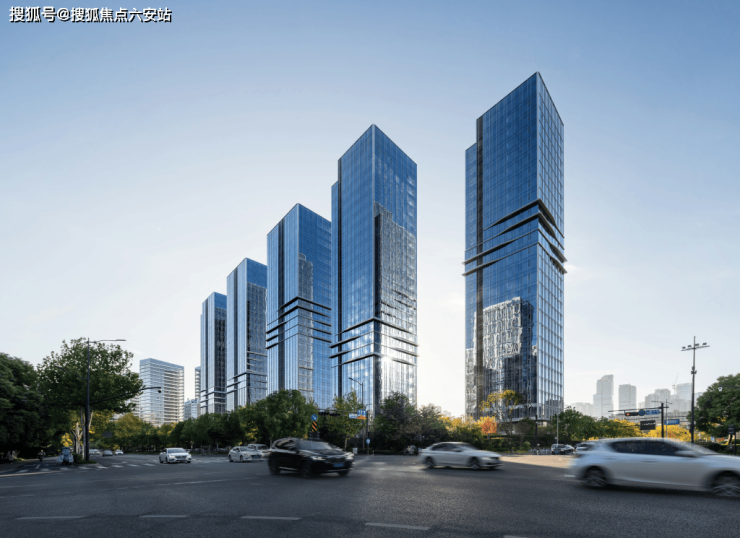 从“钱江潮”汲取灵感,5幢建筑一字排开,灵动起伏的腰线,舞动世界的风潮。湛蓝玻璃立面与江河相映,映影城市璀璨。