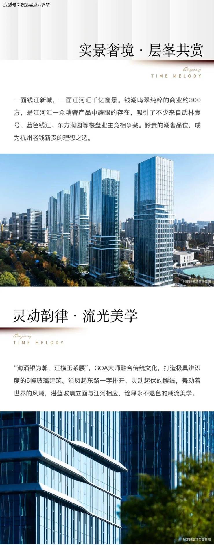 滨江钱潮鸣翠是杭州钱江新城核心区域的一处商业项目,具有优越的地理位置、卓越的建筑设计、高端的生活配套和优质的物业服务。