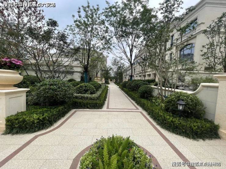 整个园区,以经典的绿城法式墅区景观大中轴贯穿,占地约1000多㎡,联排建筑的设计,融合了中国传统院落布局与法国枫丹白露宫的审美,外立面大面积采用全石材干挂,檐口等细节部位使用仿石。