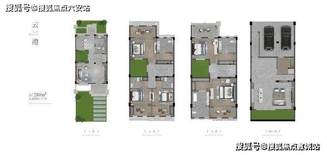 建面约350㎡户型为例:首先是庭院够豪阔。每一扇门与窗的外面,都是自家的前庭、后院、中庭、侧院,花园270°环绕的感觉,不要太美妙。
