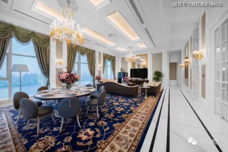 项目以“顶豪装标”重新定义行业标准,装修成本达2.1万元/㎡(新古典风格),涵盖20项顶级配置。入户采用意大利Alias铜门,大堂配置巴卡拉水晶吊灯,客厅地面运用凡尔赛宫同款拼花工艺,卧室铺设意大利人字拼木地板。