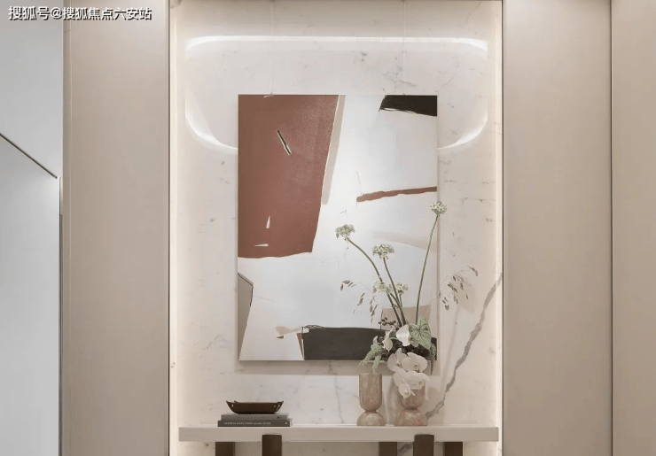 电梯厅与玄关创新一体化格局,如同作画一般,讲究一致化铺装、内外色系交融,重构归家的仪式感,亦延展家的生活空间。