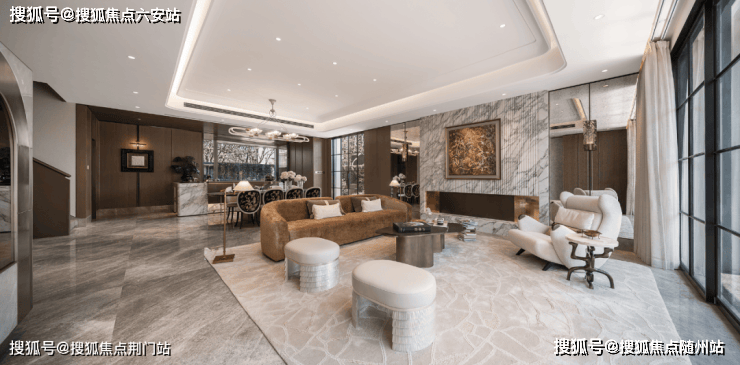 还不止,大到豪宅才有的嵌入式冰箱,小到顶喷花洒、主卧镜柜里的美妆冰箱等,都是交付标准,就连次卫也首次配置上了智能马桶; 不断映入你眼帘的,还有各种木饰面、奢石、岩板,以及定制款龙头、门把手.....