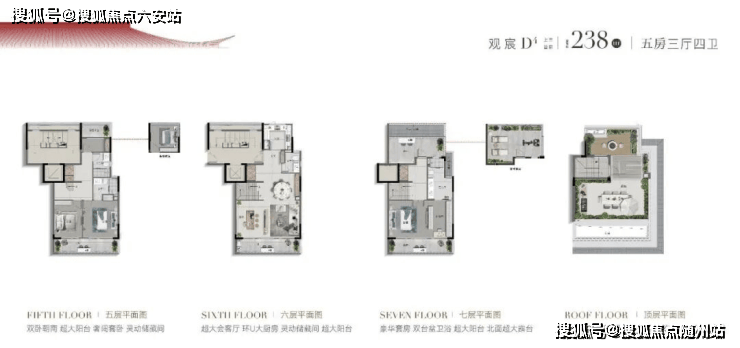 同时,下叠均带约50-60㎡院子,最大的一套更达夸张的210㎡。上叠呢,则可享约80-90㎡露台,满目琉璃山色。其中约238㎡的空中别墅,还开创性地设计为“三层墅”,三代同堂家庭可分层而居。