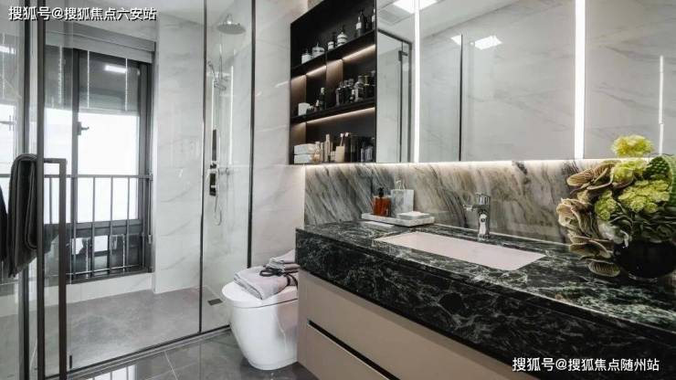 隐藏式玄关收纳、U型厨房、防雾镜柜,细节中见高效利用;