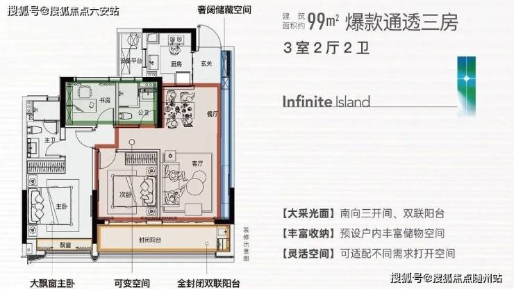 星缦云渚主力在售的王牌99方通透大三房,不仅凭借低密大盘内的占位,享有同级高层更大视野与更大采光面,作为改善入门款户型,更以250万的总价段,给予当代年轻人更友好的改善门槛。