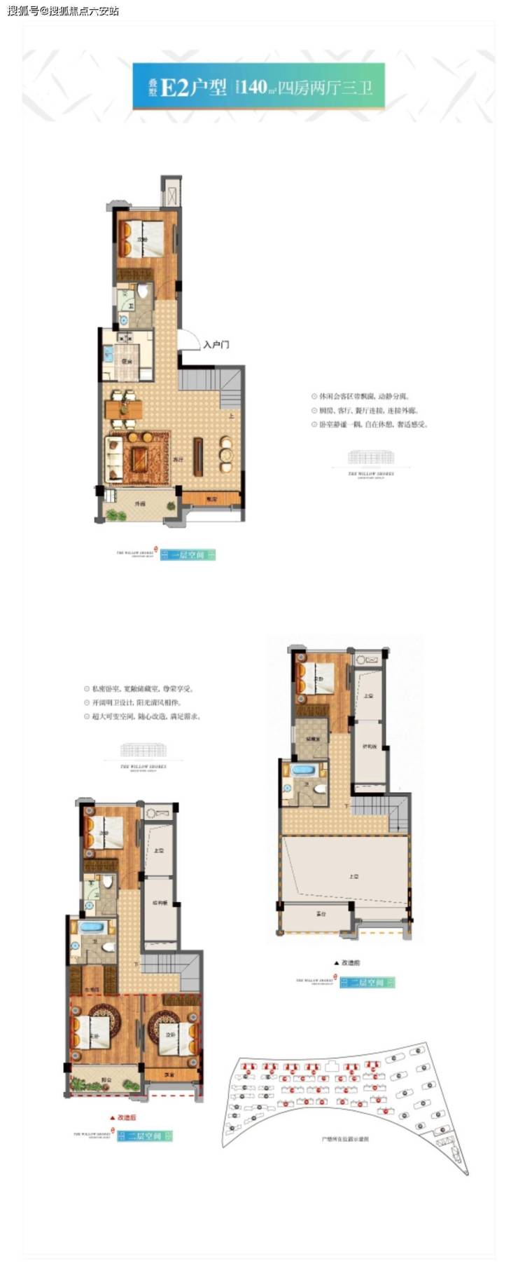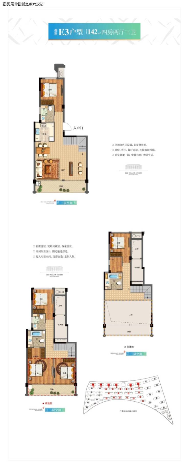 房源分布:11幢法式小高层(516套)、23幢叠墅(348套)、11栋法式合院(53套)组成、共917户