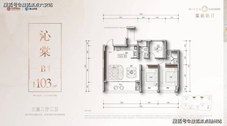 建面约103方三房两卫: