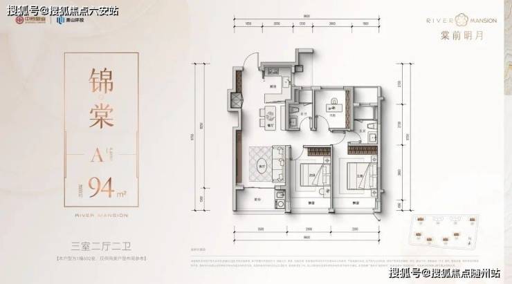 建面约94方三房两卫: