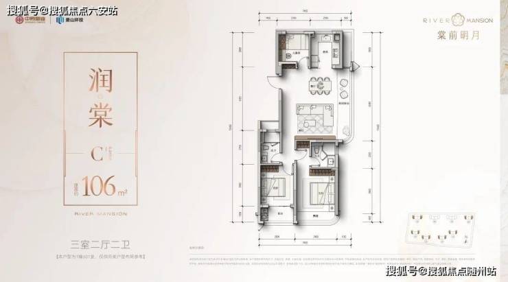 建面约106方三房两卫: