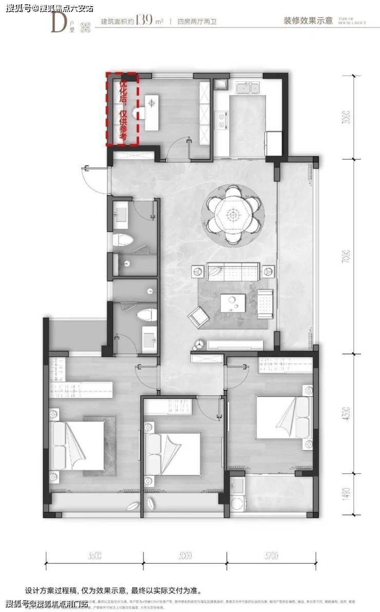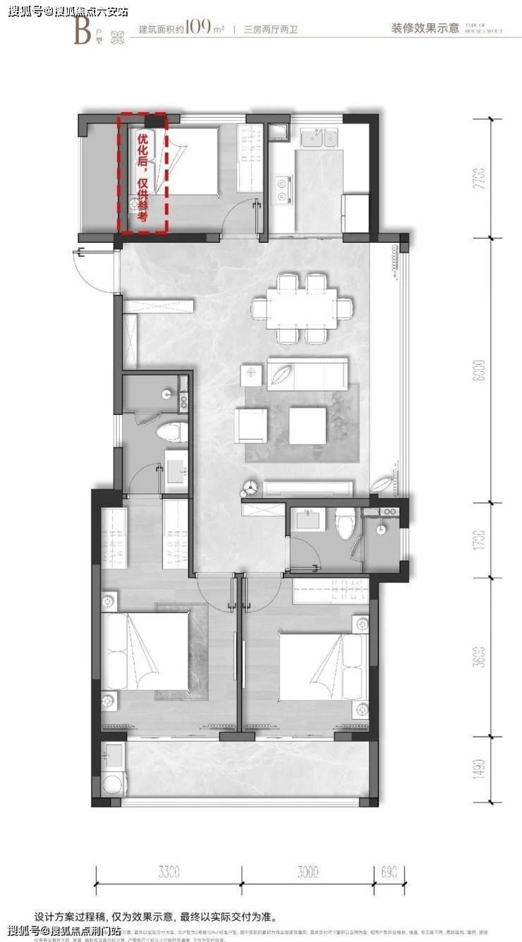 注意,这是个边套户型,如今起步户型越来越大的情况下,三房户型一般都被安排到了中间套,但在琉翠轩,情况反转了,便能享受边套户型。