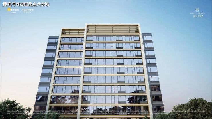立面采用米色仿石铝板+香槟金铝板组合,呈现云影流动效果。