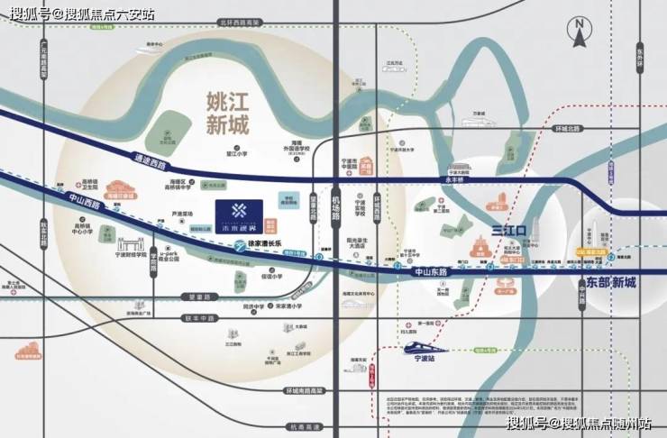 项目位于宁波城市新门户,海曙核芯城区,占位中山西路城市干道。周边可达三江口、老江东、东部新城等重要板块,连接天一广场、IFC、阪急等璀璨商业。