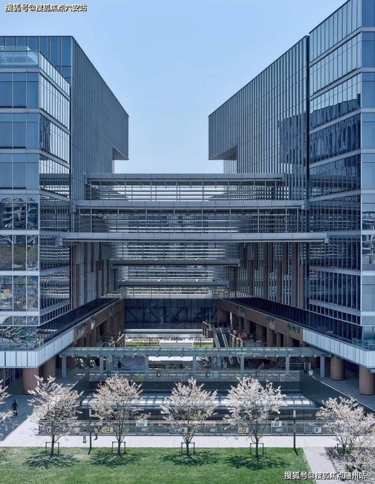 项目创新性采用“公园上盖”设计,通过退台花园、屋顶绿化及景观通廊,将自然生态融入办公空间。建筑采用LOW-E玻璃幕墙,保障采光通透性与节能效果,标准层高4.2-4.4米,得房率超75%。