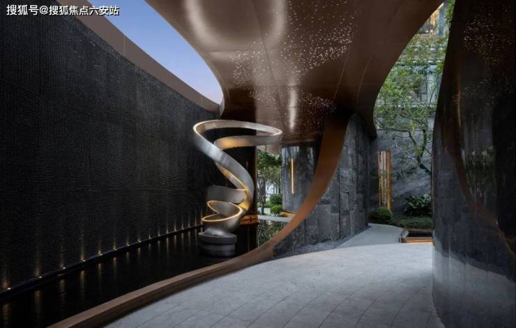 当波纹装置在超长界面上流转,光影与金属的碰撞如潮水轻吟,一场关于归家的仪式悄然开启。人车分流的静谧,精工石材的温润,艺术的波纹在夜色中泛起涟漪,仿佛天地初开时的一抹温柔,为每一位归者献上无声的礼遇。
