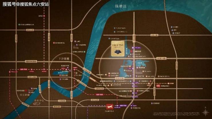 不止,还有近在身旁的城市配套。从咏月望庐出发,直线不到一公里,就是更贴近城市的东沙湖公园,江东天街、宝龙广场、在建的浙一钱塘院区都在附近;往西直线约600米是7号线江东二路站,能一路直达奥体、西湖。