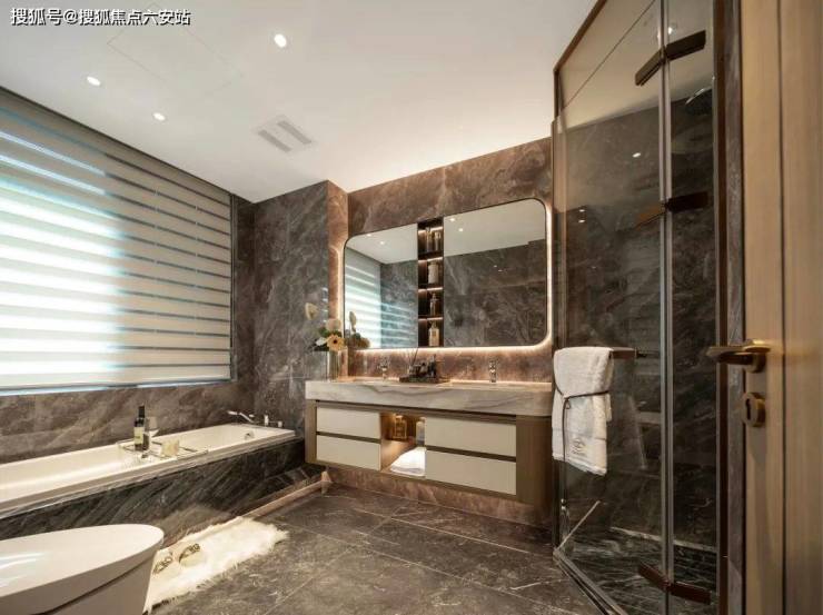 堪比星级酒店总统套房的主卧,带独立卫浴间,配上双台盆+大浴缸,以及走入式衣帽间,既是太太的更衣室,也是先生的名表收纳室。