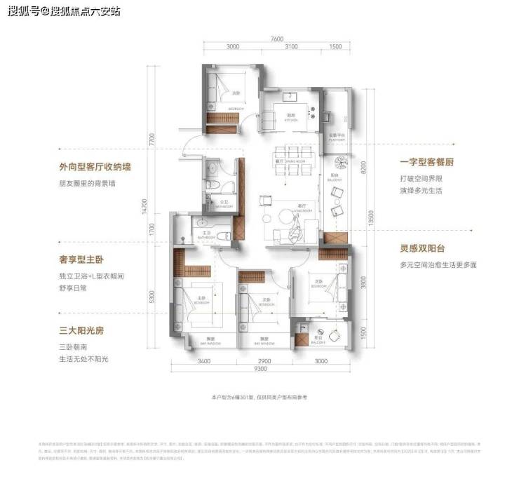建面约126m改善四房则以LDKB“超级”客厅、双阳台分置