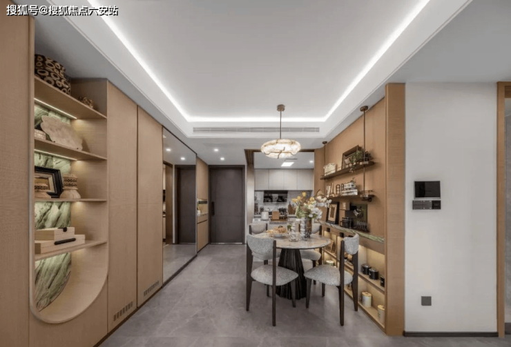 随处可见的仿大理石肌理的岩板,散发出温润而典雅的气质,妥妥的板块高品质楼盘。