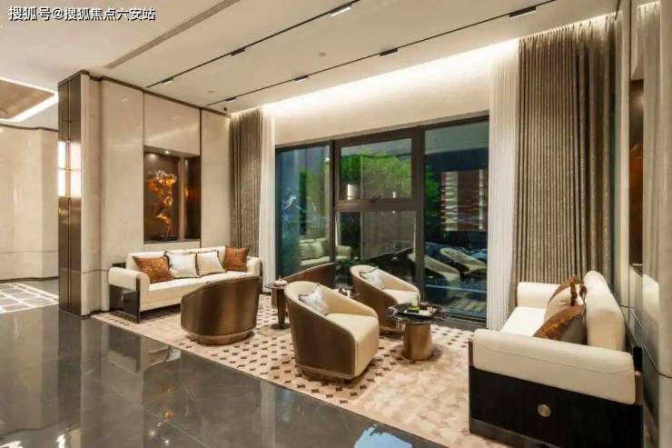 高定酒店式风格入户大堂,气派感十足强化大堂艺术风味;奢华岩板装饰,尽显格调,奢享尊贵归家礼遇;酒店式风格地下光厅大堂,优雅乘梯体验,到达首层即是户特色景观组团和硬质铺装,整体归家仪式感拉满,提升业主尊贵归家仪式。