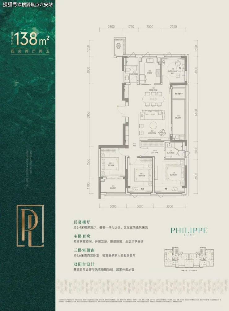 建面约138㎡是全明边套,三面采光,270°环绕视野。配上约6.4米横厅与大阳台,像一块被阳光浸透的生活幕布,日常就很有度假感。