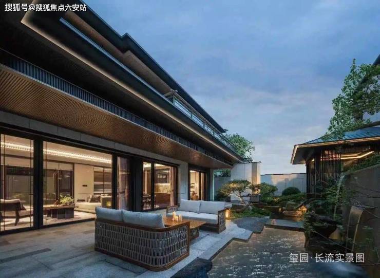 玺园二期合院景观由绿城环境宋淑华老师设计,以浙派园林风格为基底,汲取《溪山行旅图》《西园雅集图》灵感,以宋代长流涧串联整个景观轴线,并以绿植、景石等风景要素点缀;同时,结合地势地貌,打造鹭影松汀、秋月莲池等“长流八景”与馥桂巷、丹枫巷等11条巷道,给人“如在画中游”的情景体验。